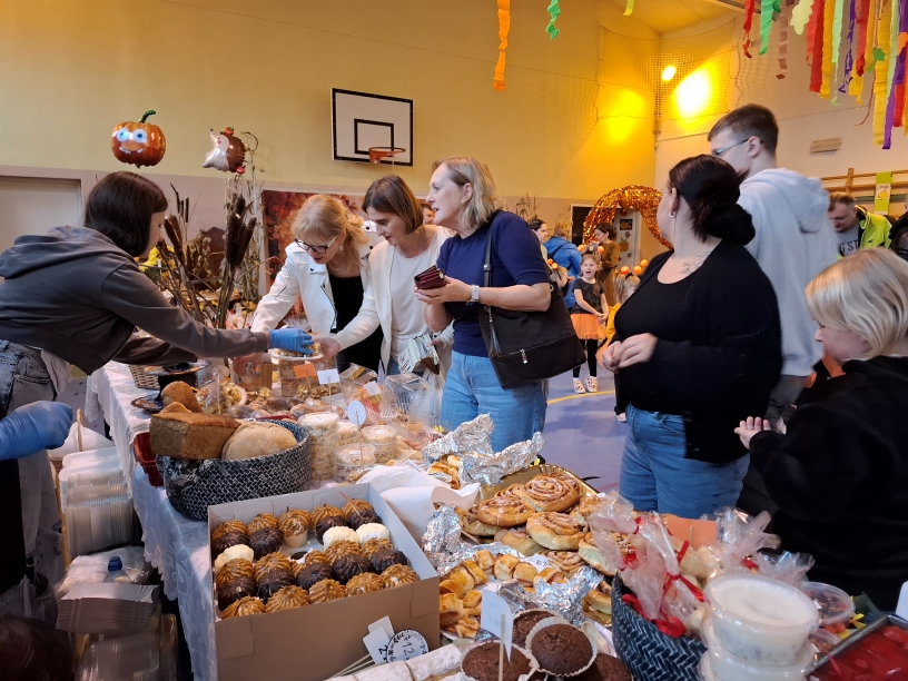 Na stoiskach można było skosztować pysznych pierogów, pyz, zapiekanek, hamburgerów, chlebów, przetworów i słodkości, a także kupić piękne wiązanki i stroiki na Święto Zmarłych.